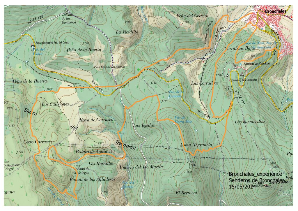 ¿Estás preparado para disfrutar de más de dos horas de BTT en estado puro? Te proponemos las mejores sendas de Bronchales en un recorrido de casi 18 quilómetros. Empezaremos desde el pueblo y subiremos por la calzada de La Cruz de Almas para seguir por los senderos sinuosos junto al Cerro de la Laguna. Unos metros más allá tomaremos el intrépido sendero de Peñas Agudas, donde tendremos que remontar el descenso hasta la pista de La Laguna. Entonces llegará el momento de descender por la senda de los Maquis —probablemente la más bonita y divertida de todas las sendas— y por la pista del barranco de la Tejada enlazaremos con la subida al Cerro de la Negradela y la bajada por la senda de la Negradela hasta la fuente del Caracol, de aquí tomaremos la senda del Vallejuelo, que nos llevará a Bronchales. Ahora remontaremos hasta el Camping por una difícil y dura senda de subida, una vez en el camping ascenderemos hasta Corralizas para descender por la senda del Fraile y la Monja. De nuevo, en el pueblo, finalizaremos la ruta.